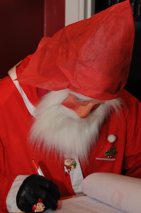 Jultomten talar väl om festlighet i sig. Här är tomtefar djupt upptagen med att leta namn på alla snälla deltagare i en lång, lång lista år 2008...