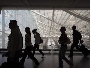För att inte bara tro att jag fotograferar i dämpad kvällsbelysning har jag valt en avstressande bild från storflygplatsen CDG ( Paris Charles de Gaulle Airport). Bilden talar om mål och framåtanda samtidigt som jag tog ett steg tillbaka, kopplade av och tryckte av när känslan var den rätta. Mitt fokus låg på att behålla bakgrunden tilltalande och storslagen, höljd i just så mycket ljus som där strömmade in...