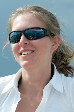 En varm sommardag ute på havet blev ljusförhållandena plötsligt riktigt gynnsamma för porträttfotografering. Att det någon timma senare även skulle börja falla regn bekymrade mig föga då. Det hade ändå varit av de bästa sommarhelgerna med underbara solnedgångsfotograferingar osv. Regnet just denna dag blev dessutom högst kortvarigt. Tittar man noga syns havet, molnen och även segelbåtens bom i solglasögonens spegelbild. Jag myser av sommarkänslor var gång jag ser denna bild på Anki...