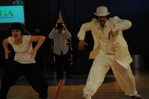 I mitten, till höger, bjuds publiken på danstävlingen Stockholm Grand Prix 2008 en grymt bra och inspirerande pauseunderhållning av streetdansgruppen
