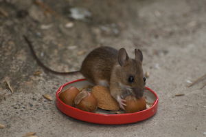 De övriga bilderna på samma mus (mot slutet var de två skogsmöss som vågade sig fram) är dock tagna utan blixt. Med den nedersta högra bilden lyckades jag till slut fånga lite av rörelsekänslan i de kvicka och plötsliga rörelserna som hela tiden karaktäriserades av ryckvisa framryckningar och skyddstagningar. Att komma i samma nivå som en mus för fotografering, var svårare än jag föreställt mig...
