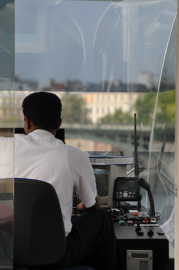 Under en båtfärd i Paris fångade jag en bild av förarens arbetsmiljö. Åtminstone för stunden lugn och behaglig med god sikt framåt.